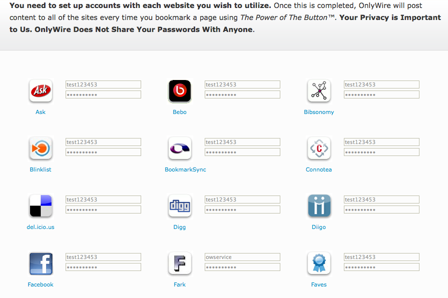 OnlyWire.com’a üye olup bir kereliğine hesap bilgilerinizi imleme